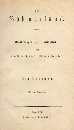 Na své cestě jsme mezitím vystoupili vždy výše, až se nám z jednoho sedla středočeské pahorkatiny, na rozmezí, kde se rakousko-saská silnice větví odbočkou do západních Čech, nabízí poslední kruhový rozhled na terasovitě utvářený kraj, který zanecháváme za sebou. Na míle daleko leží před našima očima jasně zelené nivy jako nekonečný koberec, na jehož jasnějším podkladě se jako líbezný desén rýsují mnohotvárné temně lesnaté vyvýšeniny chlumů a mezi nimi bílé zdi roztroušených osad. Na východě pohled zabloudí až daleko za vltavský tok a k Táborské hornatině. Vydáváme se na další pouť a ve fialovém zbarvení večerní oblohy i v prvním doutnajícím zásvitu červánků zapadajícího slunce nás ohromí svou vážností mohutné panorama Šumavy. Nejprve nižší předhůří po obou stranách údolí Volyňky, kde lze ještě zřetelně rozlišit les a polnosti; dále jako v šlojíři zahalené výšiny kolem Vimperka (Winterberg, v originále zřejmě chybou tisku Weiterberg! - pozn. překl.); za nimi pak šedý obrys rozlehlého hlavního hřebene s daleko patrnou dominantou Boubína (Kubani), a jako čtvrtá, nejvzdálenější vrstva sotva už zřetelné oblé linie Bavorského lesa. Tam někde při jihozápadním obzoru může oko vyzbrojené dalekohledem objevit i vrcholy při obou Kvildách (v originále "Außengefild und Innengefild" - pozn. překl.), temné strážce pramenů Vltavy.