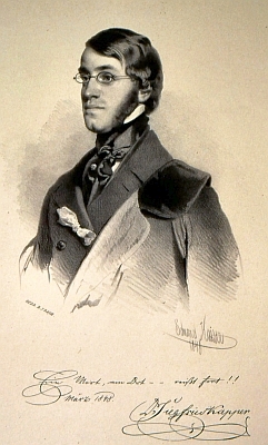 ![]() Na litografii Eduarda Kaisera z roku 1848, provázené i vlastnoručním podpisem tehdy osmadvacetiletého Kappera Repro Wikipedia.de |