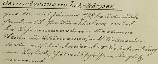![]() ... a ukončení služebního poměru už v březnu téhož roku svědčí výmluvně o tom, jak vzácné byly Marianně Weißové Repro Kronika německé obecné školy Přední Výtoň, SOkA Český Krumlov (SOA v Třeboni - digitální archív) |