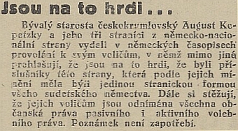 ![]() Takto na jeho politické postoje reagoval český list Republikán Repro Republikán, 1934, č. 9, s. 3 |