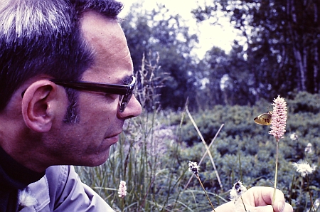 ![]() Při fotografování žluťáska borůvkového, vyskytujícího se na Šumavě i v Novohradských horách Repro archív Otakara Kudrny, foto Lothar Mayer |