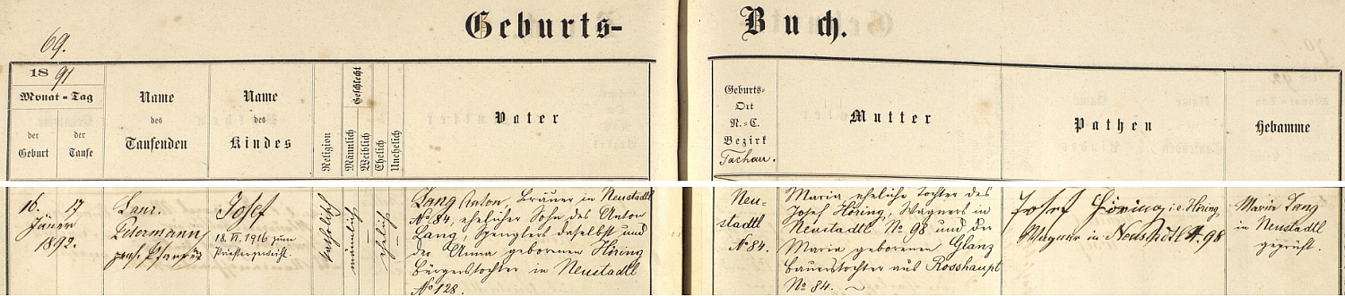 Záznam o jeho narození v křestní matrice Stráže u Tachova Repro SOA v Plzni - Porta fontium |