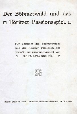 Obálka a titulní list (1908) jeho brožury pro návštěvníky pašijových her v Hořicích na Šumavě s bohatým fotografickým doprovodem Josefa Seidela |