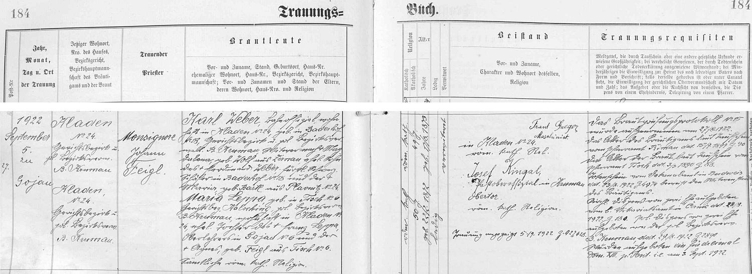 Alespoň podle zprávy českobudějovického německého listu zněl titul přednášky řídícího učitele z Kájova (Gojau) Franze Leppy na okresní učitelské konferenci v Českém Krumlově (v originále "B. Krumau") opravdu tak neskutečně optimisticky, totiž "Nimm den Kindern das Lügen, pflanze ihnen Wahrheit ein!" Snad to byl duch počínajícího nového století, které se mělo nakonec tolik zvrtnout. Kájovský přednášející, bratr učitele Adalberta Leppy a strýc jeho synů, německy dvou literárně činných bratří Karla Franze a Konrada Leppových (všech tří i samostatně zastoupených na webových stranách Kohoutího kříže) pocházel z mlynářského rodu Leppů (původně Lepů) a narodil se na dnes zcela zaniklém Lojzově mlýně (Loimühle) u obce Běleň (Wieles). Stalo se tak dne 18. prosince roku 1847, téměř dva roky poté, co byli 9. února 1846 v kostele Nejsvětější Trojice v Bohumilicích sezdáni běleňský mlynář Josef Lepa, syn mlynáře z Chvalšovic (dnes část obce Dřešín, okr. Strakonice) čp. 18 na tehdejším panství Přečín (dnes část obce Vacov, okr. Prachatice) Adalberta Lepy a Franzisky, roz. Kvěchové z Dřešínku (dnes místní část Dřešína), s Marií Rohlíkovou, vdovou po Janu Rohlíkovi, sedláku z Hradčan (tehdy znělo místní jméno Račany, dnes jsou Hradčany osadou obce Bošice, okr. Prachatice), dcerou sedláka z Hradčan čp. 4 Jana Zelenky a Kateřiny, roz. Vondráškové z Budilova (dnes stejně jako Hradčany osada obce Bošice). Po smrti této své první ženy a matky všech jeho dětí na Lojzově mlýně ve 49 letech 20. března 1869 na zápal plic (byla pochována na hřbitově u zátoňského kostela Stětí sv. Jana Křtitele) se Josef Lepa (psal se příjmením stále takto s jedním "p") roku 1876 v pokročilejším už věku 57 let oženil podruhé. O manželce jeho syna Franze z prvního manželství se dovídám ze záznamu oddací matriky farní obce Ktiš (Tisch), kde Agnes Feiglová v rozlehlém stavení čp. 6 na rovněž rozlehlé ktišské návsi dne 16. ledna roku 1846 přišla na svět jako dcera zde "zvostávajícího" (v matrice "Bleiber") Mathiase Feigla (někde se příjmení píše i "Feigel") a jeho ženy Marie, roz. Bräuerové ze Ktiše čp. 11. Franz Lepa (v oddací matrice ještě s jedním "p") a Agnes se ve ktišském kostele sv. Bartoloměje brali 23. května roku 1871. Od 27. dubna 1873 do 31. srpna 1883 působil Leppa v Perneku (poté, co absolvoval německý učitelský ústav v Českých Budějovicích, učil před příchodem do Ktiše ve Smědči /Großzmietsch/ a v Pohoří na Šumavě /Buchers/, ve Ktiši byl ještě podle záznamu o své svatbě podučitelem, jako "německý" učitel se už psal se dvěma "pp"), odkud po 10 letech přesídlil do Kájova. Už v Perneku čp. 26 (dům tak označený tam až dosud stojí) se mu 5. června 1874 narodila dcera Anna. která ovšem tamtéž 28. června 1882 zemřela na záškrt, stejně jako mladší její sestra Agnes (*31. prosince 1882 v Perneku, †17. srpna 1885 už v Kájově). V Kájově čp. 20 (přestavěný dům takto označený tam stojí dodnes) přišla na svět 16. srpna 1887 dcera Albina, zemřelá tam na zápal plic 6. října 1893. O tři roky dříve se 5. září 1884 Leppovým narodil syn Johann, který svou smrtí na souchotě 2. července 1902 přežil alespoň matku, kterou skolila mozková mrtvice 23. ledna roku 1901. Oba byli pochováni v Kájově, kde 23. dubna 1913 skonal v nedožitých 66 letech i pan řídící učitel Franz Leppa. Zprávu o úmrtí přinesly i pražské listy "Prager Tagblatt" (2. května) a "Prager Abendblatt" ("už" 1. května). Českokrumlovský německý list "Deutsche Böhmerwald Zeitung" mu věnoval 2. května obsáhlý nekrolog, kde připomíná nebožtíkovo třicetileté kájovské působení (za 40 let školské služby mu právě v dubnu 1913 byla udělena čestná medaile), čestné občanství Kladného (Kladen) a Křenova (Krenau), ale i skutečnost, že otce přežilo jediné jeho dítě, dcera Marie (jako správnou kájovskou luštitelku ji nacházím 10. srpna 1910 na hádankářské příloze časopisu "Wiener Bilder", který otec zřejmě odebíral, předtím 1899, 1900 a 1902 na podobném místě časopisu "Das interessante Blatt", otci do Kájova taktéž docházejícím). Spatřila světlo světa ještě ve Ktiši 22. února 1872 jako z dětí prvorozená a provd. Weberová zemřela v Kájově 1. ledna 1925 na mozkovou mrtvici jako její matka a "Budweiser Zeitung" přinesl 2 dny nato na své poslední straně její parte, podepsané manželem Karlem Weberem, "oficiálem československých státních drah", když přeložím do češtiny jeho německy psaný titul. Byla pochována k ostatním do kájovské rodinné hrobky. Jakou pravdu jí asi jako svým školním dětem vštípil šumavský učitel, který se naštěstí nestačil dožít všech následných hrůz dvacátého století? Asi tu, že kruh se nakonec přece jen vždycky uzavírá.