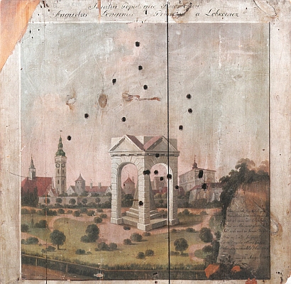 ![]() Kašna na terči ze sbírek Jihočeského muzea Repro D. Kovář, Veduty a jiná vyobrazení města Českých Budějovic 17.-19. století (2025), s. 135 |