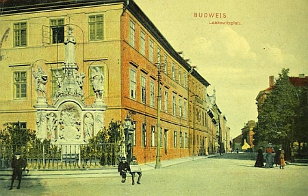 ![]() Lobkovické náměstí už bez kašny na pohlednici, zachycující i původní umístění mariánského sousoší... Repro Böhmerwaldbund OÖ - Historische Datenbank (ze sbírek Böhmerwaldmuseum Passau) |