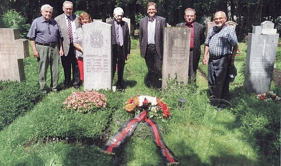 ![]() Koncem června roku 2021 se u jeho a Prchalova hrobu na mnichovském Lesním hřbitově sešli zástupci Sudetoněmeckého krajanského sdružení a položili mezi oba hroby věnec se stuhou v černočervenočerných barvách Repro Sudetendeutsche Zeitung, 2021, č. 27, s. 9 |