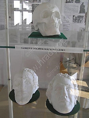 ![]() Sádrový odlitek Máchovy lebky a podoba básníka, na jeho základě vytvořená, jak jsou vystaveny v domě Máchova úmrtí... Repro www stránky Hrady.cz, (c) Karel Husák |