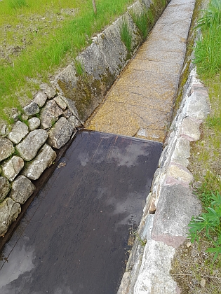 ... a po rekonstrukci na snímcích z roku 2023, na pravém snímku je zachycen přechod mezi dřevěným a kamenným dnem, používaným v místě většího spádu Foto Pavel Polák |
