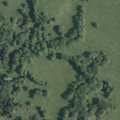 Bozdova Lhota na leteckých snímcích z let 1947 a 2018 Repro www stránky Národní geoportál INSPIRE |