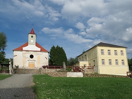 ![]() Škola v Terčí (dnes Pohorské) Vsi, vlevo kostel sv. Linharta Foto Leona Töröková |