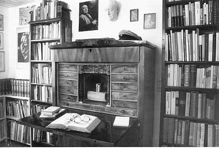 ![]() Jeho psací stůl a knihovna v tzv. "Mühlbergerově" jizbě v Lautern Repro Jahrbuch für sudetendeutsche Museen und Archive 1995-2001, s. 264 |