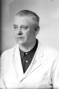 ![]() V červenci 1942 vznikla tato fotografie, na klopě (snad) učitelského pláště vidíme tehdy pro něj zřejmě nezbytný odznak |
