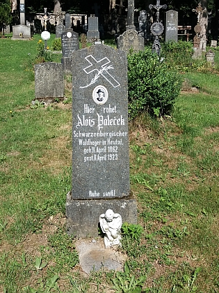 ![]() Hrob schwarzenberského hajného Adolfa Paleczeka (1837-1910) na hřbitově v Kájově... Foto Ivo Kareš |