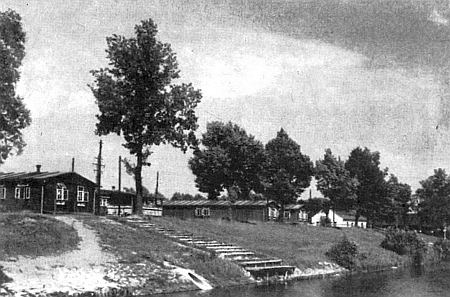 ![]() Snímek českobudějovického "internačního střediska" na břehu Malše, předtím tábora "Říšské pracovní služby" Repro Českobudějovický deník, 2. 2. 2016, s. 8 |
