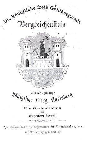 Frontispis a titulní list jeho knihy o Kašperských Horách (1875) |