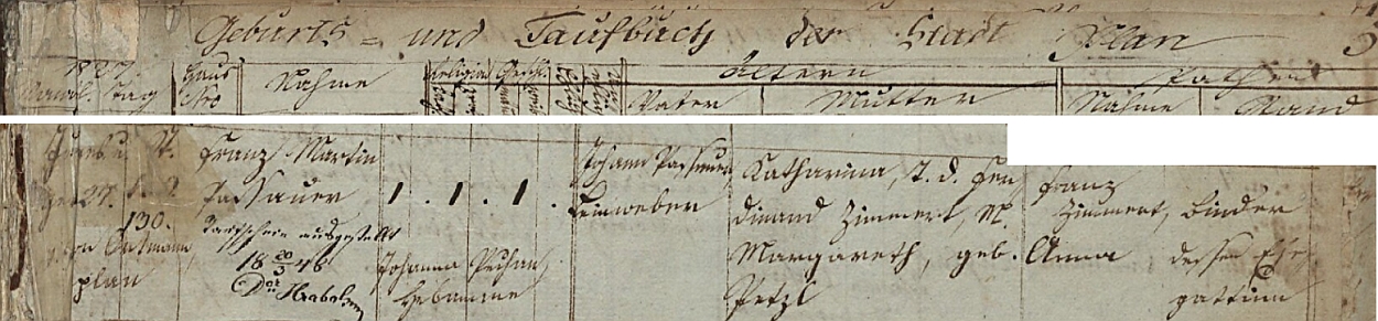 Záznam o jeho narození v křestní matrice Plané u Mariánských Lázní Repro SOA v Plzni - Porta fontium |