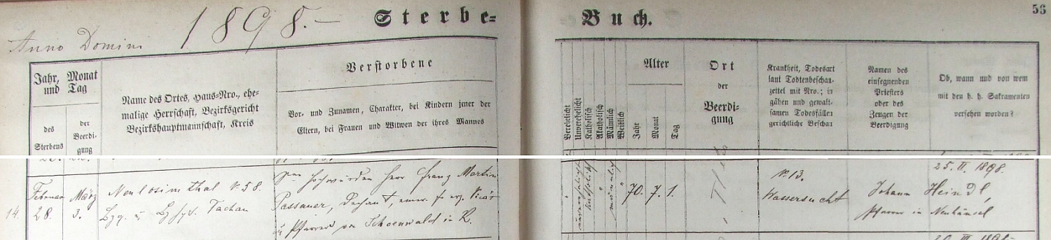 Záznam o úmrtí v knize zemřelých jedlinské farnosti Repro SOA v Plzni - Porta fontium |