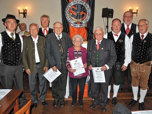 ![]() Při oslavě 70. jubilea sdružení Deutscher Böhmerwaldbund stojí mezi členy místní skupiny v bavorském Rosenheimu druhý zleva Repro OVB online, foto Ruprecht |