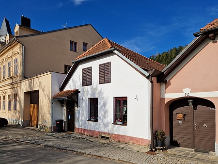 ![]() Rodný dům čp. 11 v Rožmberku nad Vltavou je ten bílý uprostřed Foto Ivo Kareš |