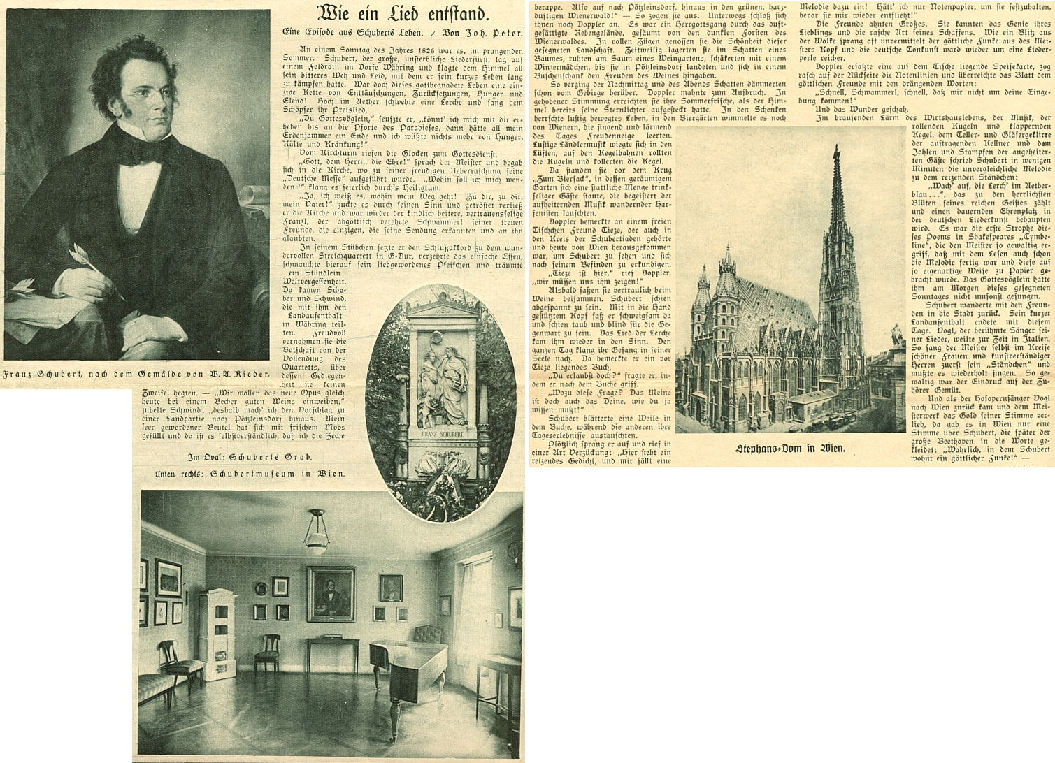 Jeho text o vzniku jedné písně Franze Schuberta Repro Sterne und Blumen, 1928, č. 28 |