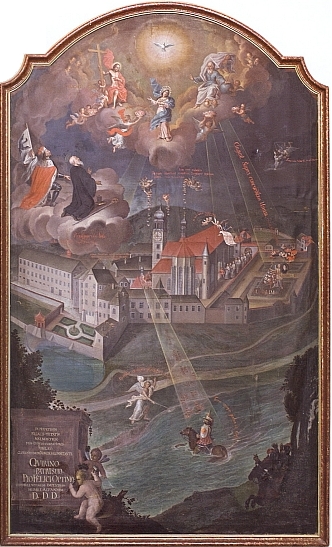 ![]() Obraz Pětisté výročí cisterciáckého kláštera Vyšší Brod (klášter Vyšší Brod, viz i Anonym 17. stol, Quirin Mickl a zejména pak Jiří Franc) Repro Památky jižních Čech. 2 (2009), s. 163, foto Tomáš Halama |