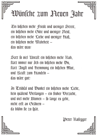 ![]() Jeho verše s přáními do Nového roku uveřejnil čtvrtletník Der Bayerwald na 1. straně svého prvého čísla v 21. století Repro Der Bayerwald, 2000, č. 1, s. 1 |