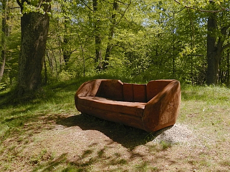 ![]() K textu "Jeden den na Šumavě": v roce 2021 přibyla na Dobrovodském vrchu v Horní Plané pár desítek metrů od spisovatelova pomníku tato "Stifterova lavička " Foto Pavel Polák |