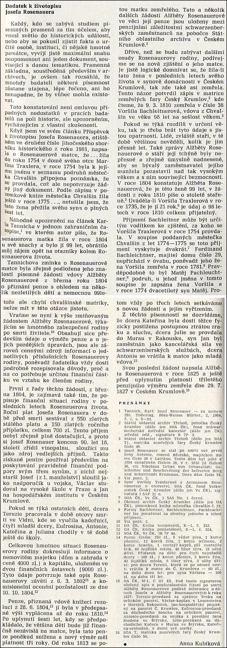 Ke sporu o Rosenauerova otce se asi nejpodrobněji vyslovila Anna Kubíková roku 1981 Repro Jihočeský sborník historický, 1981, č. 2, s. 97-100 |