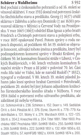 ![]() O rodu Schürerových z Waldheimu s vyobrazením rodového erbu Repro M. Mysliveček, Velký erbovník : encyklopedie rodů a erbů v zemích Koruny české. Svazek 2 (2006), s. 198 |