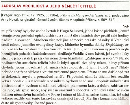 ![]() O Salusově vztahu k Jaroslavu Vrchlickému tu píše Arne Novák Repro M. Topor (ed.), Cizinci - či krajané? : reflexe německojazyčných partií Čech a Moravy v textech Arneho Nováka (2017), s. 232-234 |