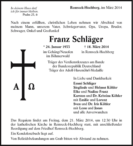 ![]() Nekrolog na stránkách krajanského měsíčníku Repro Glaube und Heimat, 2014, č. 5, s. 75-76 |