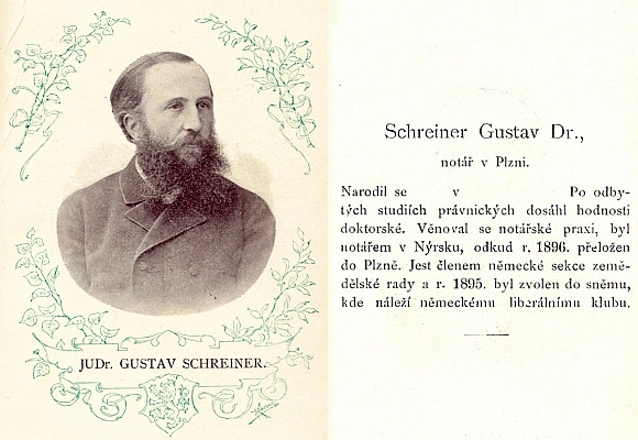![]() Podobizna a medailon JUDr. Gustava Schreinera v Almanachu sněmu království |