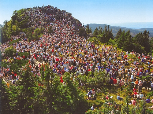 ![]() ![]() Další dva záběry z každoroční srpnové pouti na vrchol Velkého Javoru Repro V. Chabr, Šumava - Bavorský les : život, lidé, sousedé (2010), s. 52, 53 |