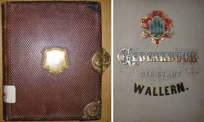![]() ![]() Jedním z nejslavnějších momentů v dějinách města Volary, jehož pamětní knihu zdobí honosné desky a neméně honosně zdobený titulní list, byl bezpochyby 17. červenec roku 1871, kdy je navštívil habsburský korunní princ Rudolf a doložil to svým podpisem Repro Gedenkbuch der Stadt Wallern (SOA v Třeboni - digitální archív) |