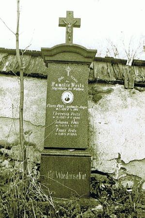 ![]() Původní podoba jeho náhrobku ve Volarech na snímku z roku 1946 - nynější náhrobek dal vsadit na stejné místo malířův vnuk Fritz Veits se jménem svého otce a malířova syna Franze Veitse mladšího Repro z daru Klause Mohra |