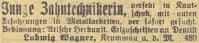 ![]() Podle tohoto inzerátu měl živnost v Českém Krumlově ještě v srpnu 1939 Repro Budweiser Zeitung, 1939, č. 60, s. 14 |