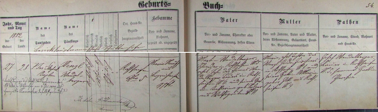 Záznam o jeho narození v kašperskohorské matrice s přípisem o mnichovské svatbě Repro SOA v Plzni - Porta fontium |
