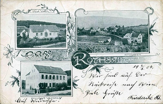 ![]() Červená na dělené pohlednice z přelomu 19. a 20. století Repro Böhmerwaldbund OÖ - Historische Datenbank (ze sbírky Dr. Otto Spitzenbergera, Puchenau) |