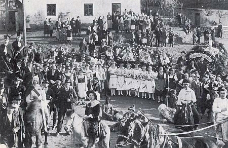 ![]() ![]() Masopustní průvod v Rychnově u Nových Hradů v roce 1936 Repro Glaube und Heimat, 1979, č. 2, zadní strana obálky a 2000, č. 2, s. 49 |