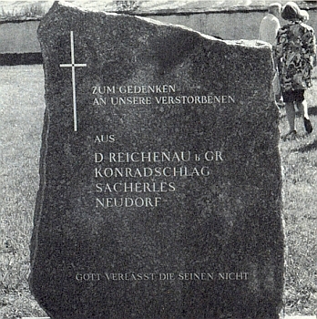 ![]() Dne 14. srpna 1993 byl v Rychnově u Nových Hradů vysvěcen na místním hřbitově tento pamětní kámen, kde text na něm končí slovy: "Bůh neopustí ty své" Repro Glaube und Heimat, 1994, č. 5, s. 47 |